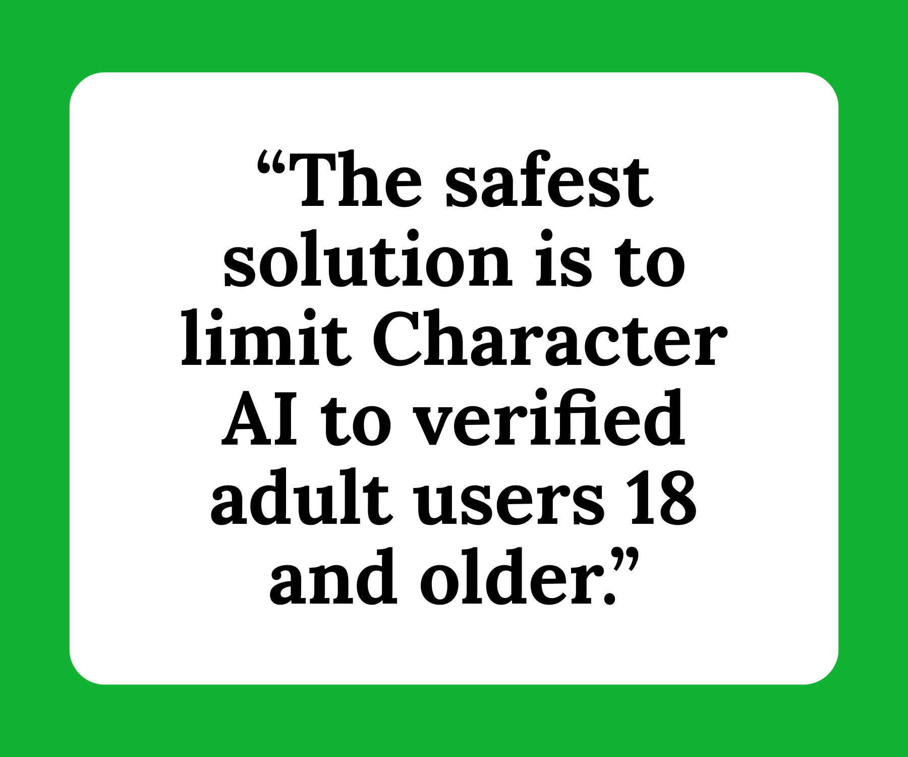 The HEAT Initiative and ParentsTogether Action conclude that Character.AI should be restricted to verified adult users aged 18 and over.